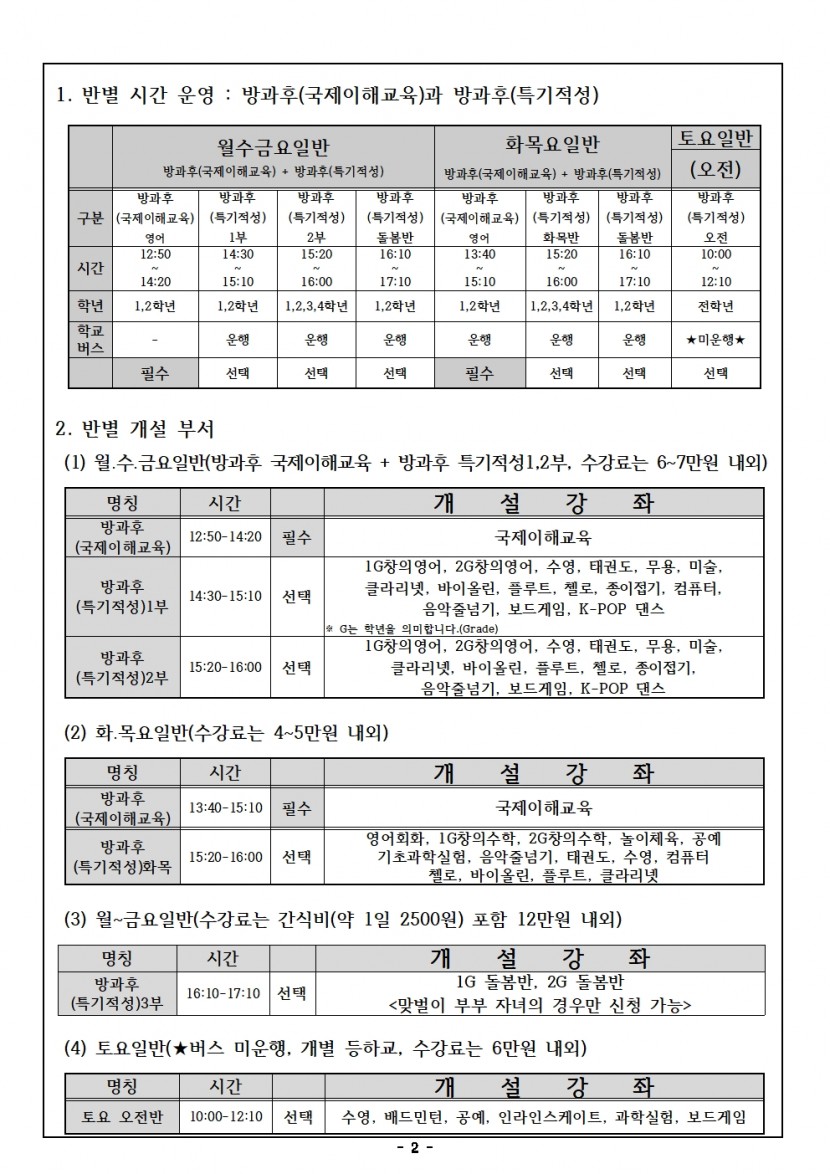2026학년도 1,2학년 방과후교육활동 신청서 예시