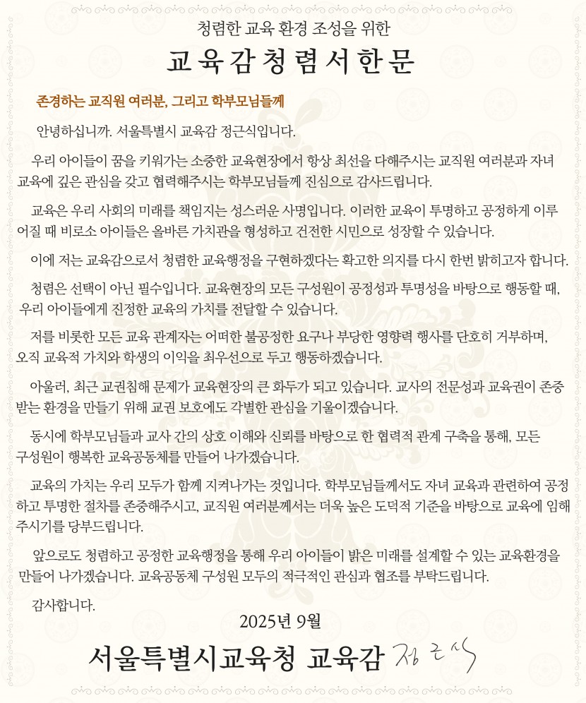 교육감 청렴서한문