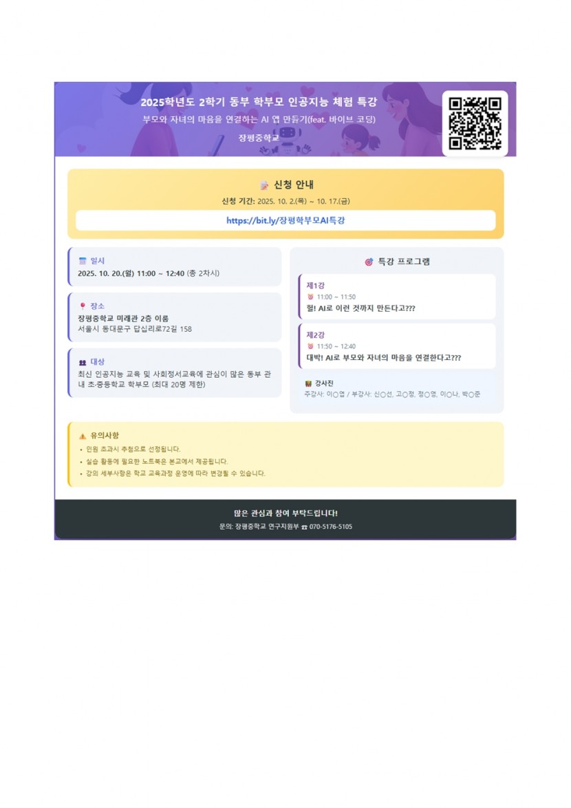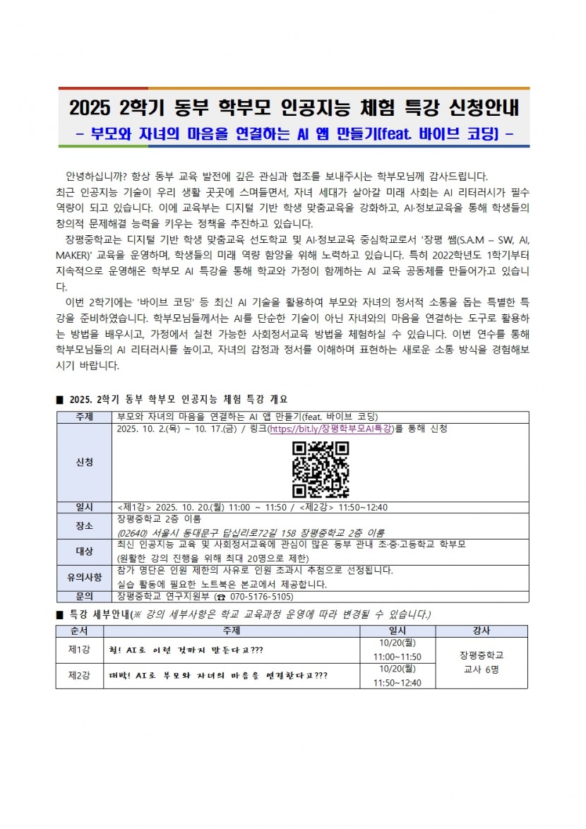 2025학년도 2학기 동부 학부모 인공지능 체험 특강 신청 안내
