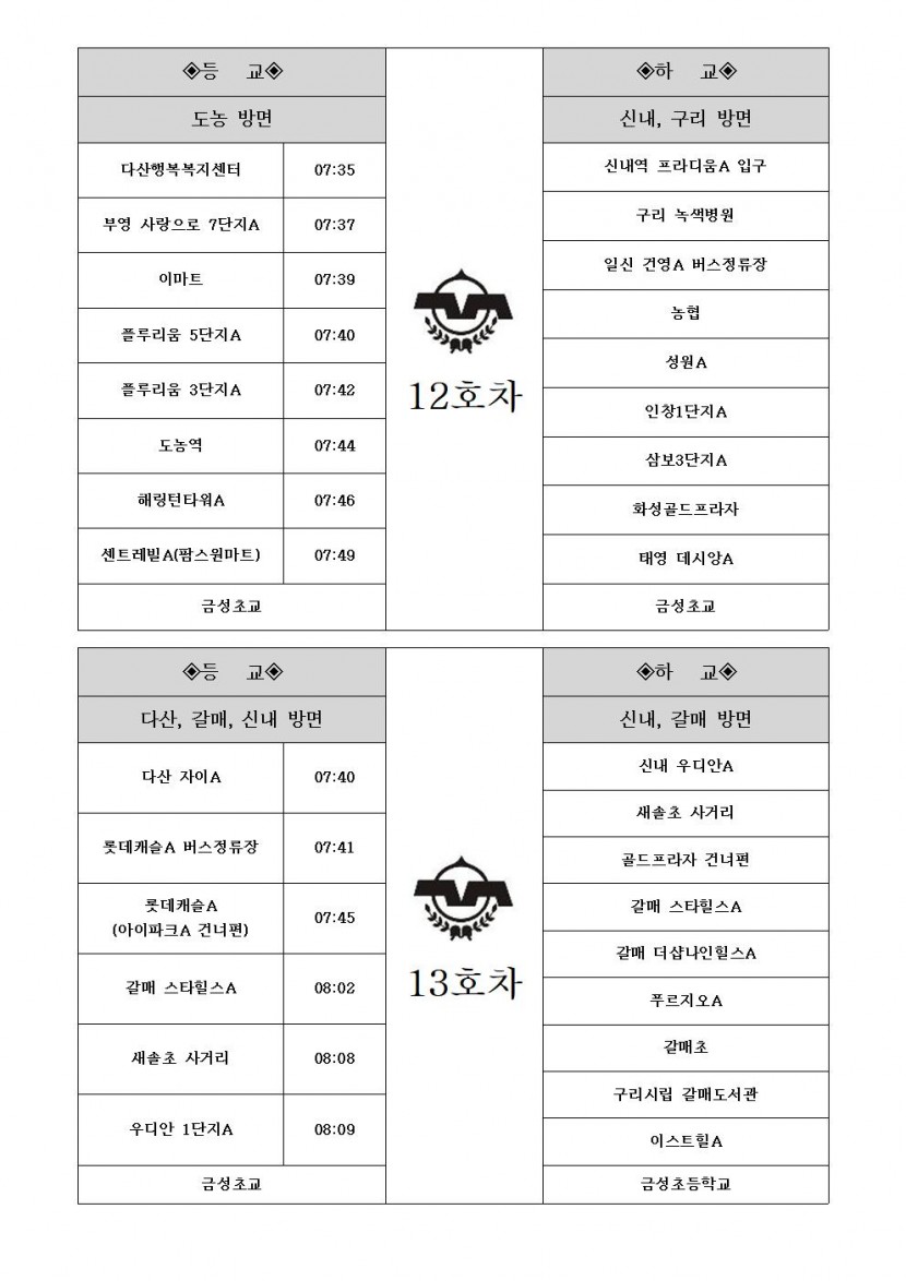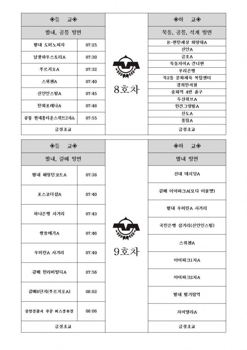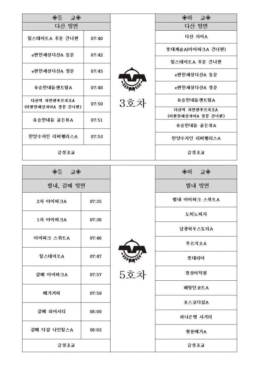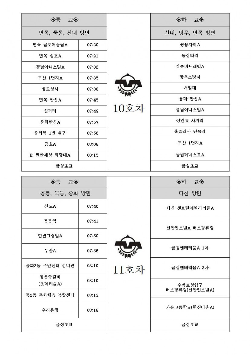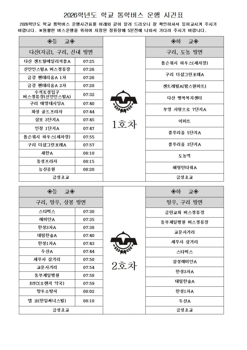 2026학년도 학교 통학버스 운행 시간표